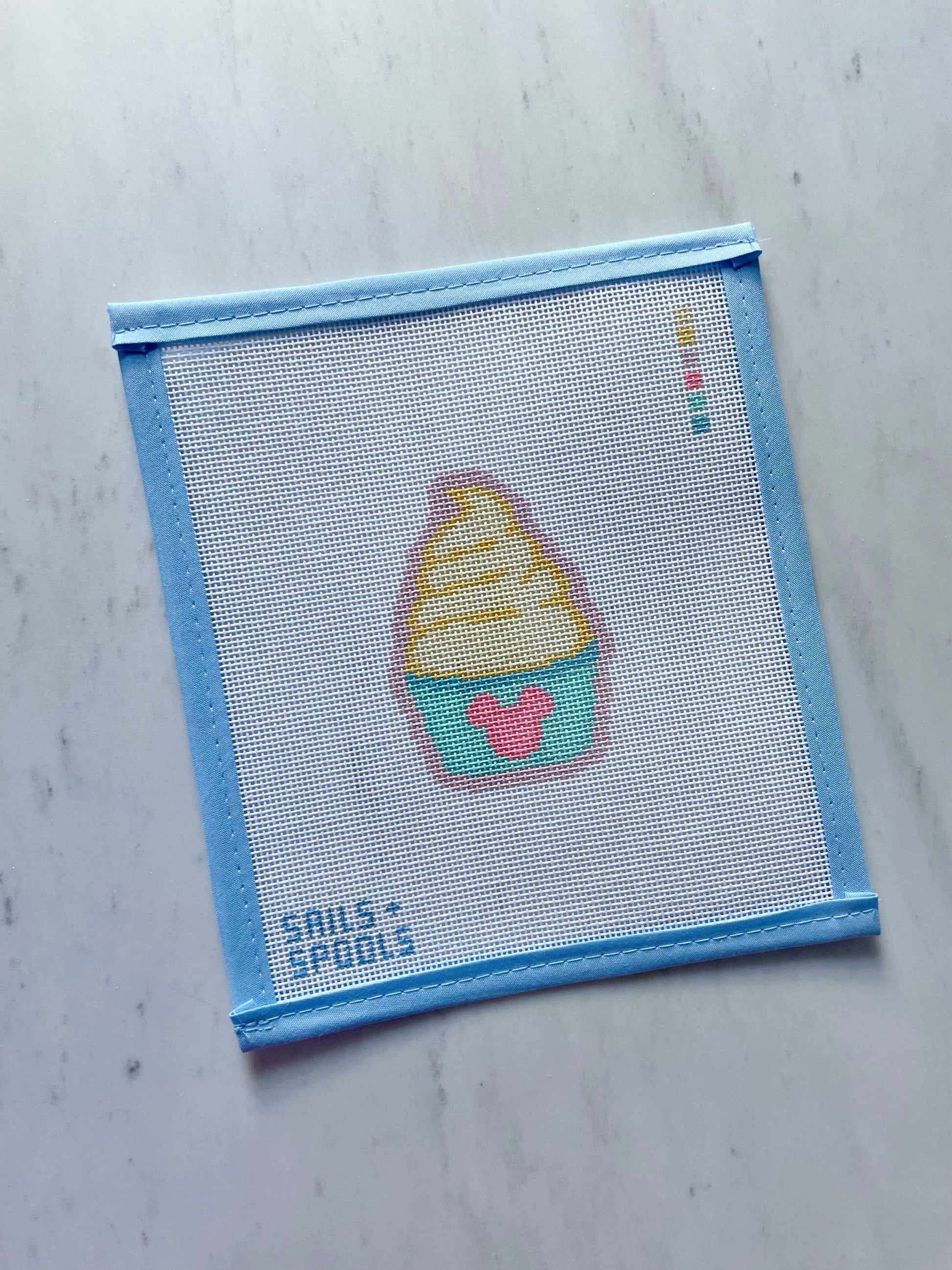 A mini version of our favorite pineapple whip canvas, this time on 18 mesh instead of the original 13 mesh! Designed in-house & hand-painted, this 18-mesh canvas measures 3.2 inches by 2.3 inches.
