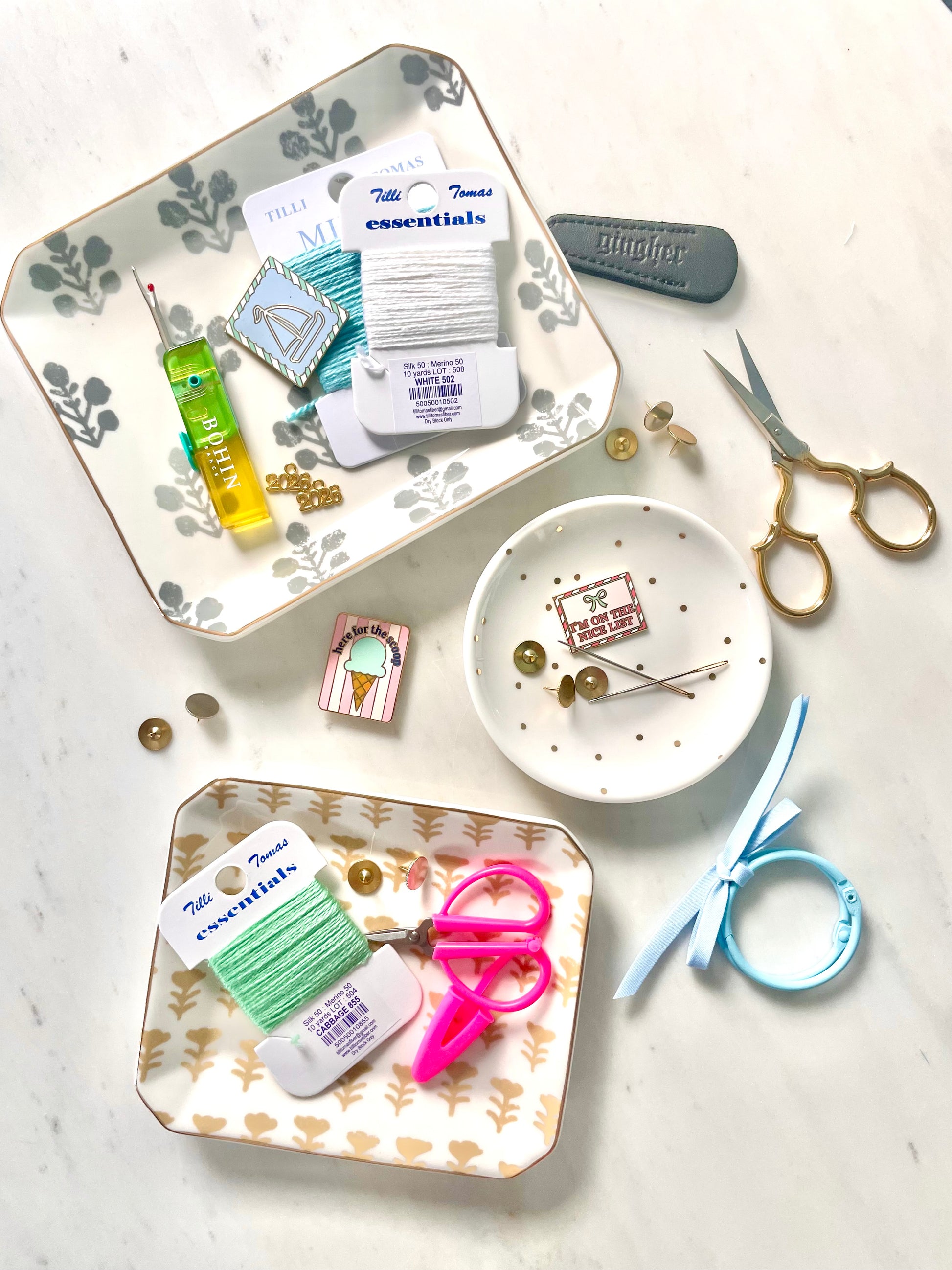 A place to drop your orts, your needle, and your tacks, this little dish combines beauty and function when set gracefully on your side table, coffee table, or nightstand.