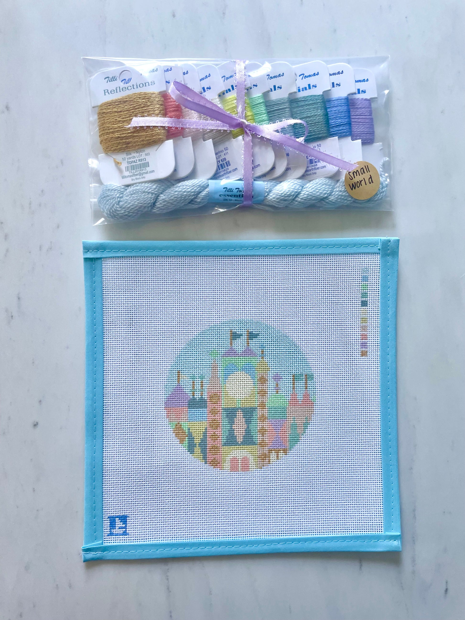 This listing is for the thread kit ONLY for the Small World canvas. You will only receive the threads needed for the project, not the canvas.
