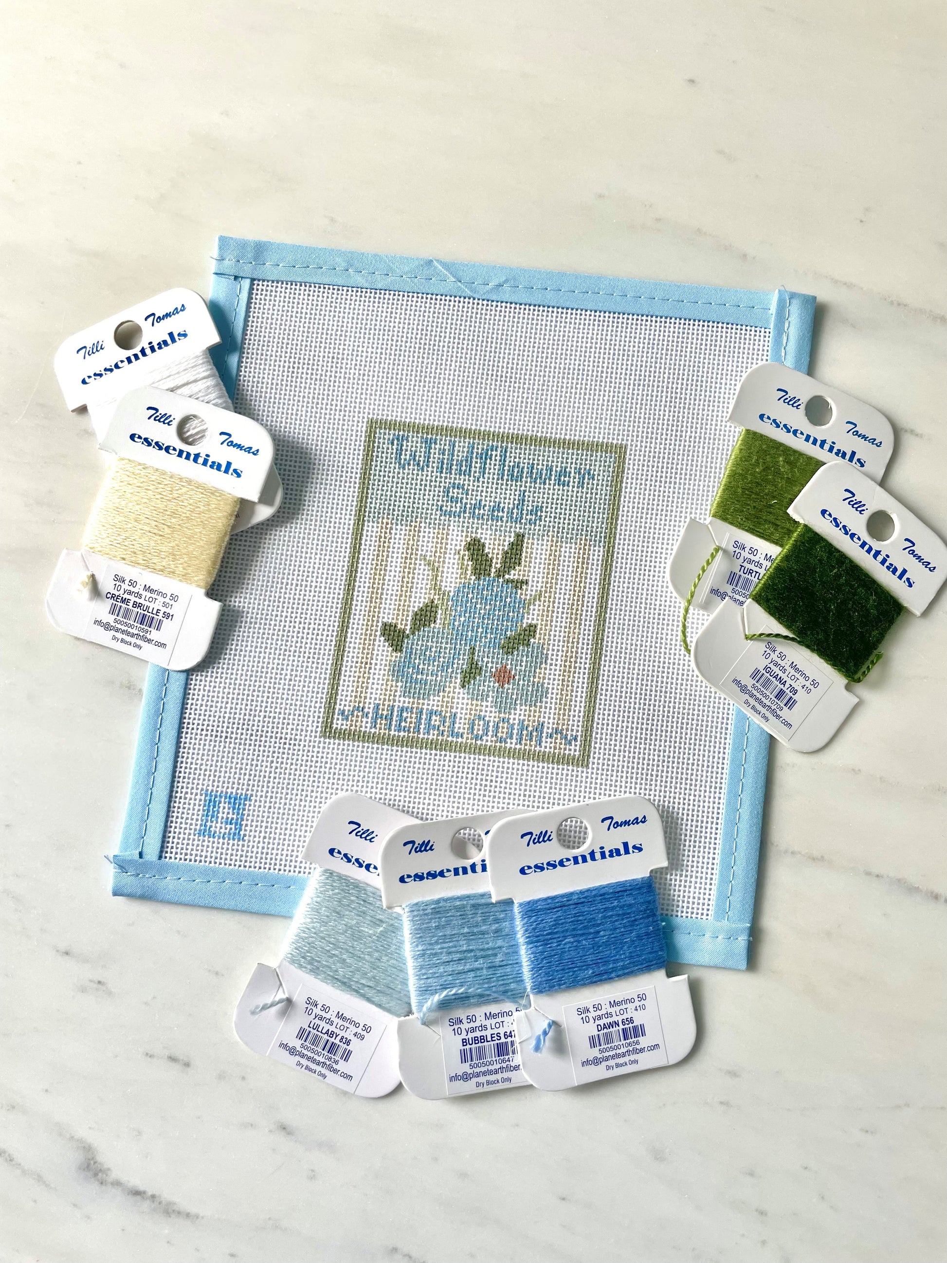 Bring the garden into your home all year long with our seed packet canvases! Each one is designed to capture the beauty of all that grows around us each season. Designed in house and hand painted, our 18-mesh needlepoint design measures 3 inches by 3.7 inches and is on an approximately 5 inch by 6 inch canvas.